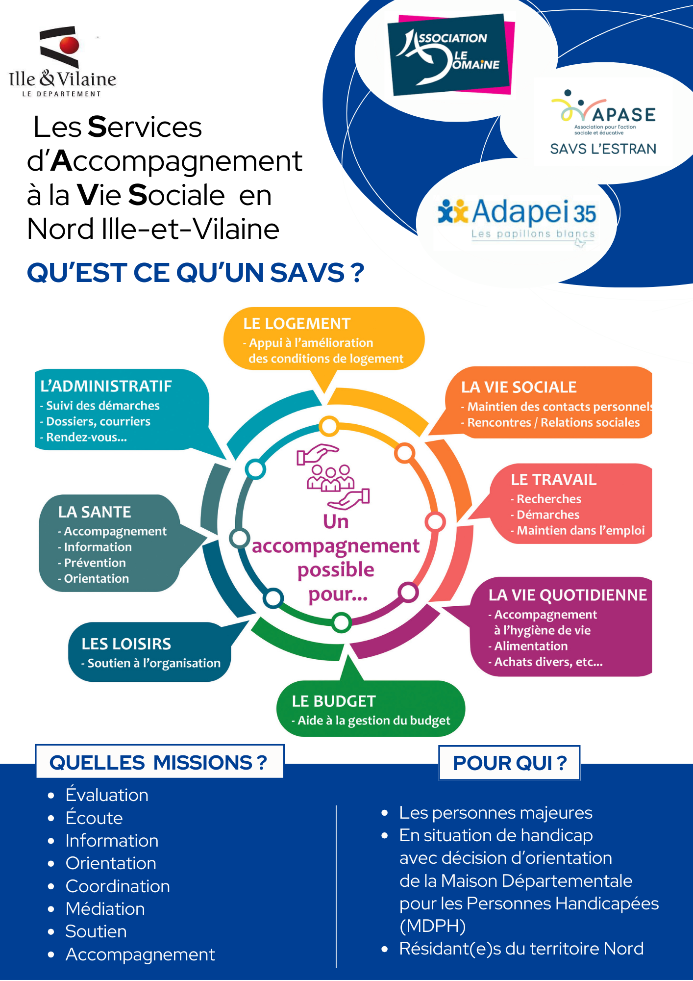 Fax: 02 99 82 68 19 Contact: savs-stmalo@apase.org Site web: https://www.apase.org/les-activites/accompagnement-social-apase/ Mineur Majeur Orientation MDPH Nécessité RQTH Orientation MDPH Nécessité RQTH